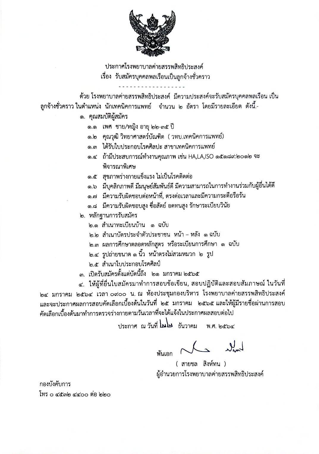โรงพยาบาลค่ายสรรพสิทธิประสงค์มีความประสงค์จะรับสมัครบุคคลพลเรือนเป็นลูกจ้างชั่วครว